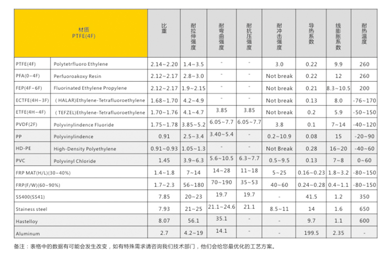 四氟材料和其他材料的防腐性能对比: