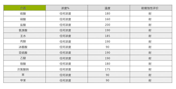 FEP是六氟丙烯与聚四氟乙烯共聚物,耐化学品性PTFE、PFA相同,除与高低温环境下的游离的氟离子、熔融的碱卤、化合物三氯甲烷等发生微弱反应外.与其它化学药品接触时均不被腐蚀;耐热性能仅次于PFA,连续使用温度-80-200度,已完全通过美国FDA标准检测.